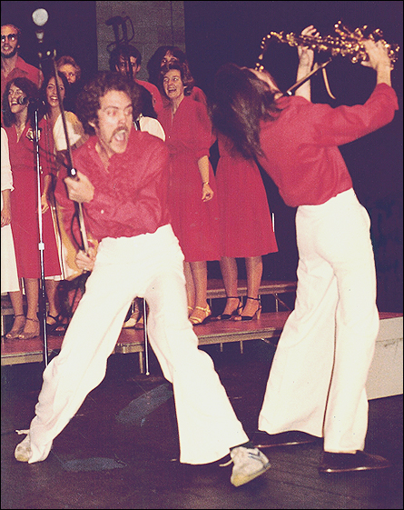 Hello. My name is Paul Montgomery. I'm the guy out front here singing my lungs out. And in the back is (or was) the Celebration Vocal Jazz Choir of Bellevue Community College 1979 - 1980, led by Harley Brumbaugh.